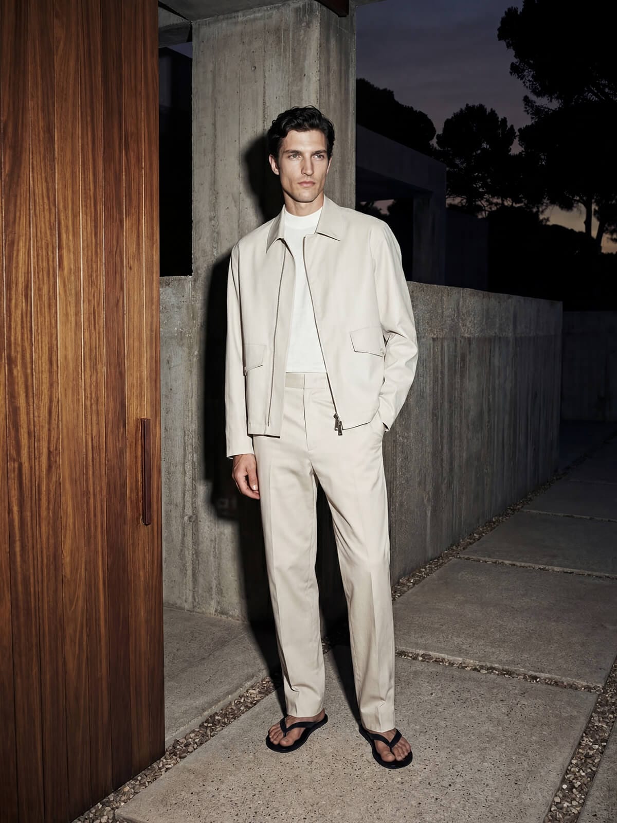 Un dialogo continuo tra struttura e leggerezza, tra forma e libertà, che definisce una nuova idea di eleganza maschile contemporanea.