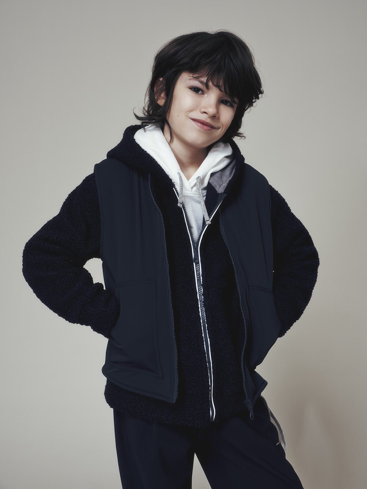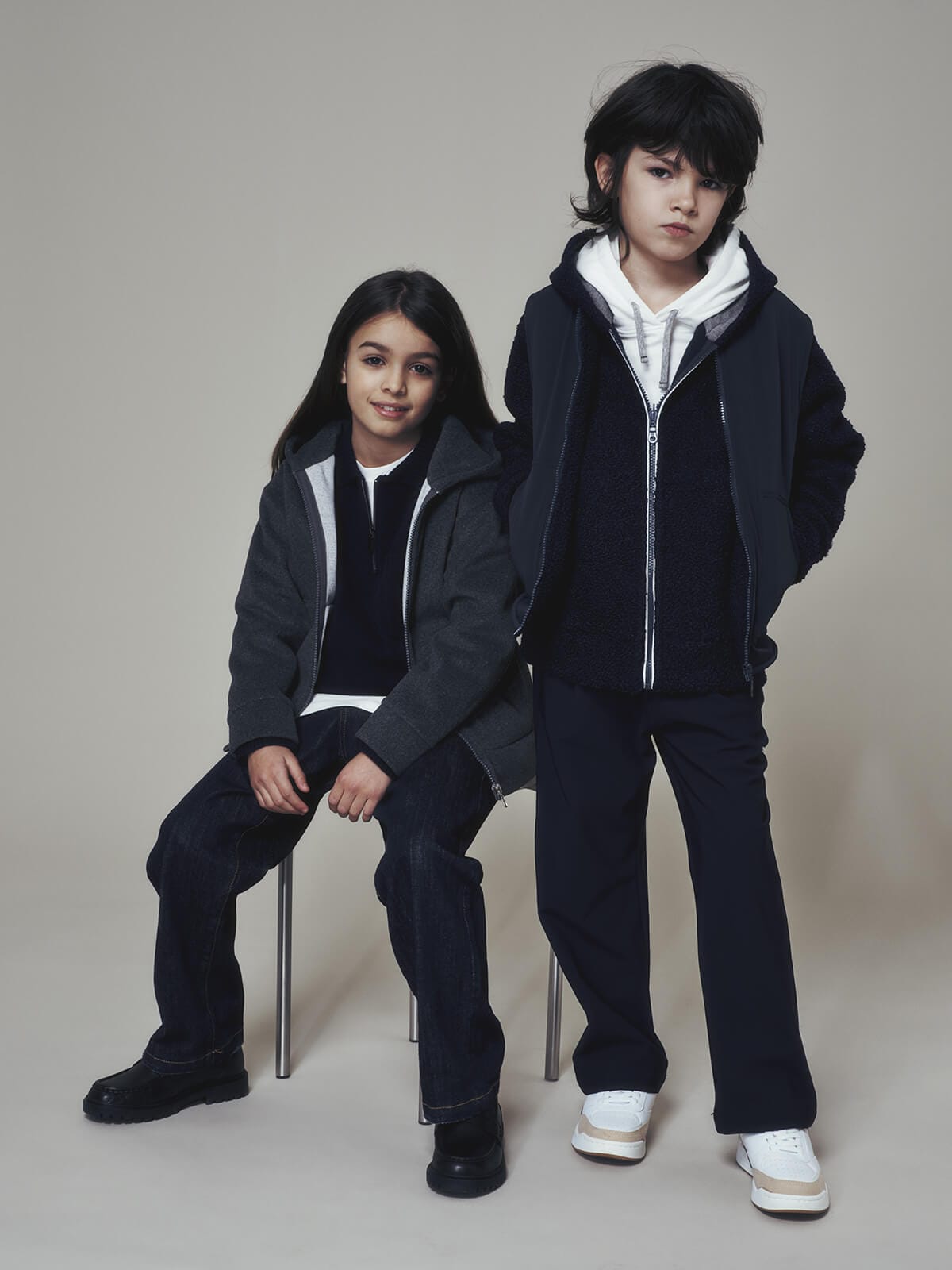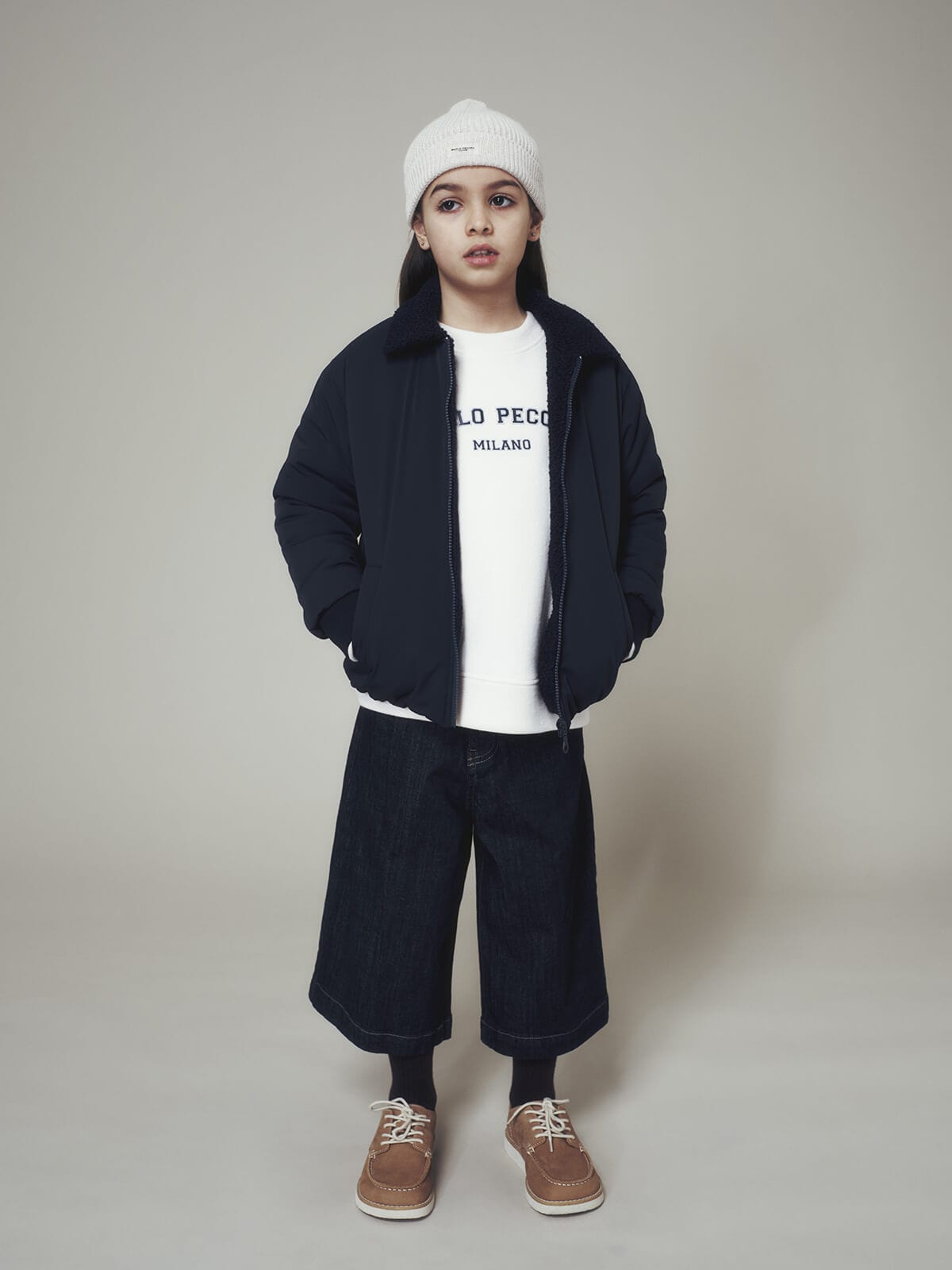 Toni morbidi e accoglienti incontrano texture ricercate e dettagli sartoriali, dando vita a look che accompagnano i più giovani tra scuola, giochi e occasioni speciali, sempre con l’eleganza senza tempo della maison.