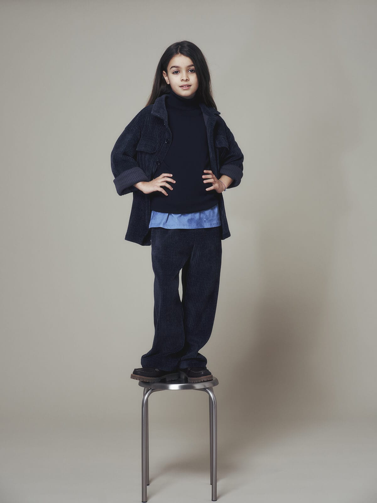 Nonostante l’eleganza dei tagli e delle lavorazioni, ogni look conserva uno spirito giocoso: sovrapposizioni inattese, stampe vivaci e geometrie moderne regalano un senso di scoperta continua, in linea con la curiosità e l’energia dei bambini.